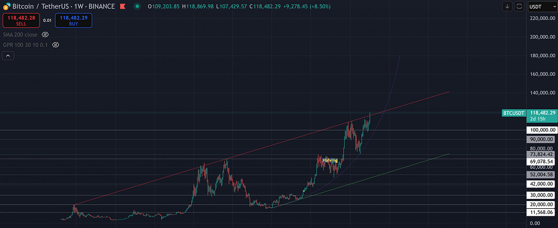 Bitcoin has broken above the last remaining resistance level at $116k and is now going into price discovery mode. For anyone who works in the industry, or has just been reading these newsletters for a while, it has been a long time coming. Four years ago we didn’t have Bitcoin ETF’s, Saylor’s seemingly unstoppable Bitcoin Strategy flywheel and governments following the US lead in a pivot to pro-crypto narratives. Blackrock’s IBIT Bitcoin ETF saw inflows of $448.5m yesterday alone, the second biggest day ever and I wouldn’t be surprised if they go higher today as we approach the end of the week. Wall Street fund managers are not immune to fomo. It’s an exciting time and I’d suggest a moment of euphoria as everyone who has ever purchased Bitcoin is now in profit. It wont always be like this, so let’s enjoy the good times and make hay while the sun shines. If Bitcoin continues it’s move up I expect it will capture attention and create the opportunity of a lifetime for traders, developers and founders who can profit and grow in their own ways from the reflexivity of the sector. Altcoins are still the key to unlocking this opportunity in my opinion and ETH/BTC is a litmus test for everything else. If mainstream attention comes back it will flow into alts as “Bitcoin is too expensive”. That might be governance tokens, memecoins, NFT’s or something entirely new that hasn’t been brought to market yet but whatever it is it will offer excitement and thrill of growing wealth fast. A word of caution that the higher this goes the more chance we see of a significant pull back and reversion back to four year cycle dynamics. A big blow off top at some point in the next 12 months would be wonderful but also a time for concern and risk adjustments. Have a plan, if you find yourself fortunate enough to be sat on life changing unrealised gains, don’t forget to take some chips off the table, do not give it all back to Mr Market. Bitcoin isn’t the only thing making all time highs with gold and stocks also putting in big moves. The other side of these pairs putting in all time lows against these asset classes is fiat. Our dollars, pounds and Euros are devaluing at an accelerating rate as the expansion of the money supply is big but questionably beautiful. Cash is trash assets are king and crypto has become a widely recognised asset class. If you’ve ever wanted to trade, build or work in the crypto sector now could be the time to capture the momentum. Social links are below and if you enjoyed this newsletter I would appreciate it if you could share this content |