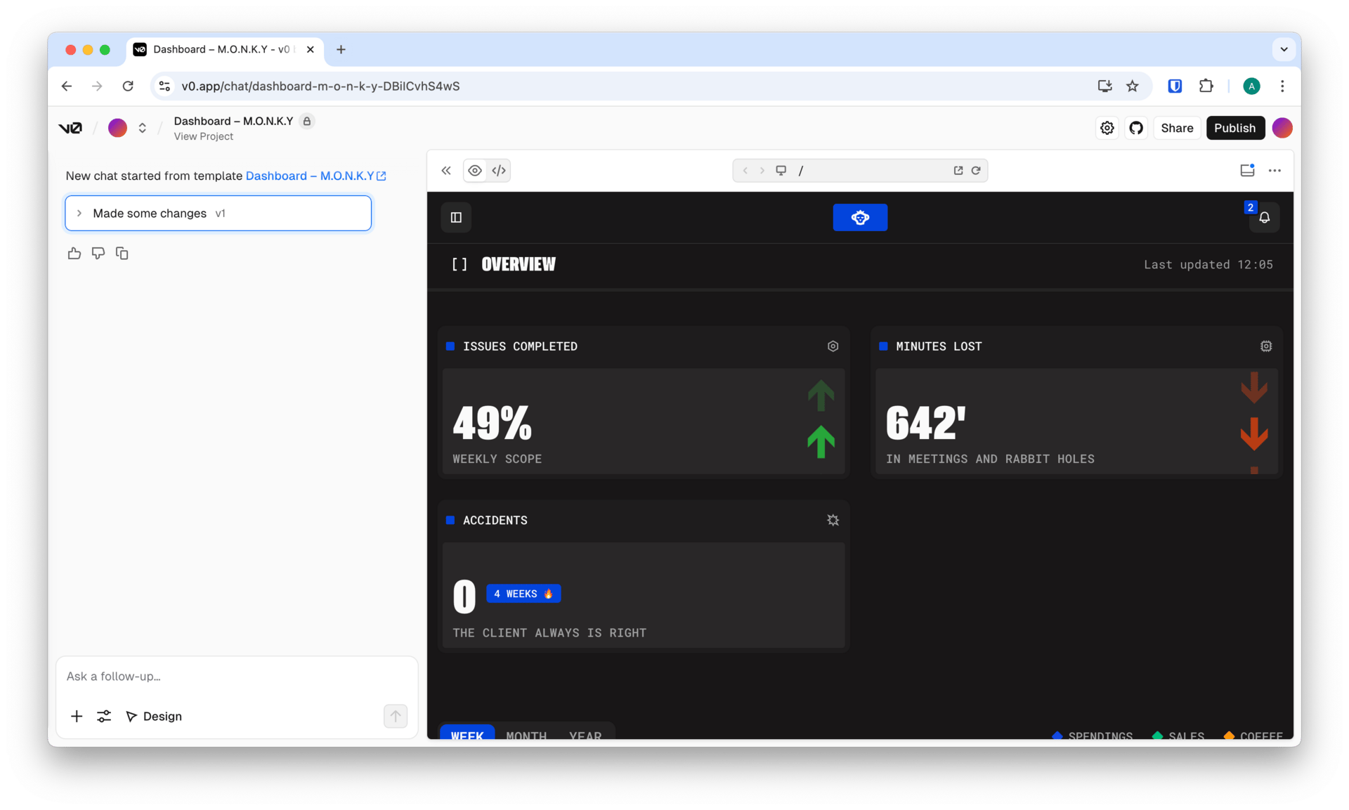 Because GitHub is built in, you can link a repo, choose a branch, and let v0 sync changes both ways. |