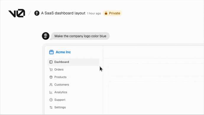 By default, v0 uses shadcn/ui with Tailwind CSS, but you can also plug in your own design system to keep everything on-brand. |