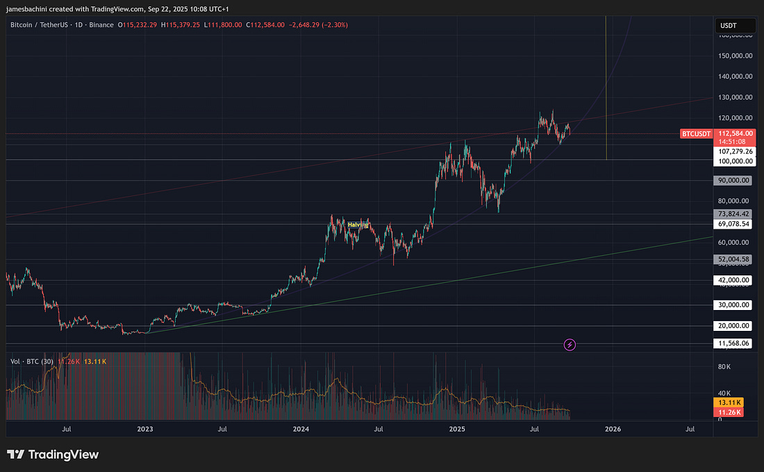 These are problems Web2 infrastructure can't address without relying on a central authority. ChatGPT succeeded through consumer virality. Cloud computing succeeded quietly through developer adoption. Web3 could plausibly follow the latter path: becoming invisible infrastructure long before average users realise they're interacting with it. Not every technology needs to be consumer facing. TCP/IP didn't succeed because end users demanded it it succeeded because it powered applications people wanted. Perhaps Web3 doesn't need a killer app or ChatGPT moment in order to succeed. What it needs is utility. If developers find that blockchains make building faster, cheaper, and more resilient, adoption will happen organically. Bitcoin is testing support here and investors conviction in the continuation of the bull market. There might be some support at $107 and $100k but below that it starts to look quite dark for anyone that is hard coded to the four year cycle. Sentiment seems fairly neutral and will follow price action. It’s hard to believe we made a new all time high just a few months back and are only 10% off that. No one using less than 10x leverage is feeling much pain here but there is a growing lack of certainty and conviction in the market. Base case remains the same, four year cycle is a thing until it isn’t but reduced volatility over the long-term (decades) will make it look like a smooth grind up as fiat currency trends towards zero and blockchain technology gains adoption. The exponential line on this chart keeps getting moved further and further to the right to give it “breathing room”, if it get’s invalidated completely then perhaps some momentum type strategies and long-term whales will exit causing a capitulation event. We aren’t there yet though and my hope is that we have at least a few more weeks or months of upward momentum and things get frothy. I’m sure we will all definitely take some chips off the table rather than move up the risk curve on the next pump… Social links are below and if you enjoyed this newsletter I would appreciate it if you could share this content |