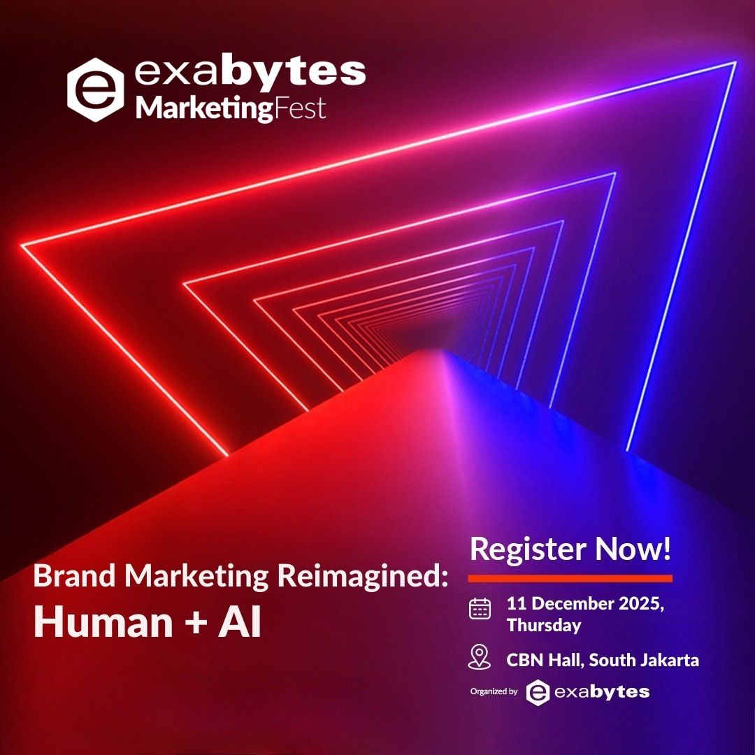 | Halo para marketer dan pemimpin brand, | Perilaku konsumen berubah sangat cepat. Keputusan pembelian kini terbentuk dari layar ponsel dalam hitungan detik, dan algoritma menentukan pesan mana yang terlihat. Di tengah kompetisi ini, brand yang unggul adalah brand yang mampu menggabungkan intuisi manusia dengan teknologi. | Itulah alasan MarketingFest 2025 hadir. Bukan sekadar teori, tetapi wawasan nyata dari praktisi yang setiap hari mengambil keputusan berbasis data, kreativitas, dan keberanian. Tahun ini menghadirkan: • Hadi Kuncoro, Founder dan Group CEO PowerCommerce.Asia • Galuh Koco Sadewo, Co-Founder dan Chief Business Development BOTIKA • Ilman Akbar, Founder DailySEO ID | Dengan tema Brand Marketing Reimagined: Human + AI, acara ini mengupas bagaimana insight dibangun, bagaimana produksi kreatif dipercepat tanpa kehilangan sentuhan manusia, serta bagaimana data konsumen diolah menjadi cerita brand yang menggerakkan. | MarketingFest adalah kesempatan untuk melihat arah industri dengan perspektif yang lebih jernih dan informasi yang teruji. | 📅 Tanggal: Kamis, 11 Desember 2025 🕘 Waktu: 9.00 - 14.00 WIB 🎫: GRATIS! | Kursi terbatas hanya untuk tamu undangan. | | | Privasi Anda penting bagi kami. Harap tinjau Kebijakan Privasi Exabytes dengan mengklik di sini. Untuk informasi mengenai Exabytes, kunjungi exabytes.co.id/hubungi-kami. Hak Cipta © PT Exabytes Network Indonesia. Cyber 2 Tower, Lantai 29, Jalan H.R. Rasuna Said, 12950, Jakarta Selatan, DKI Jakarta, Indonesia. Atur Preferensi | Buka di Browser | | | |