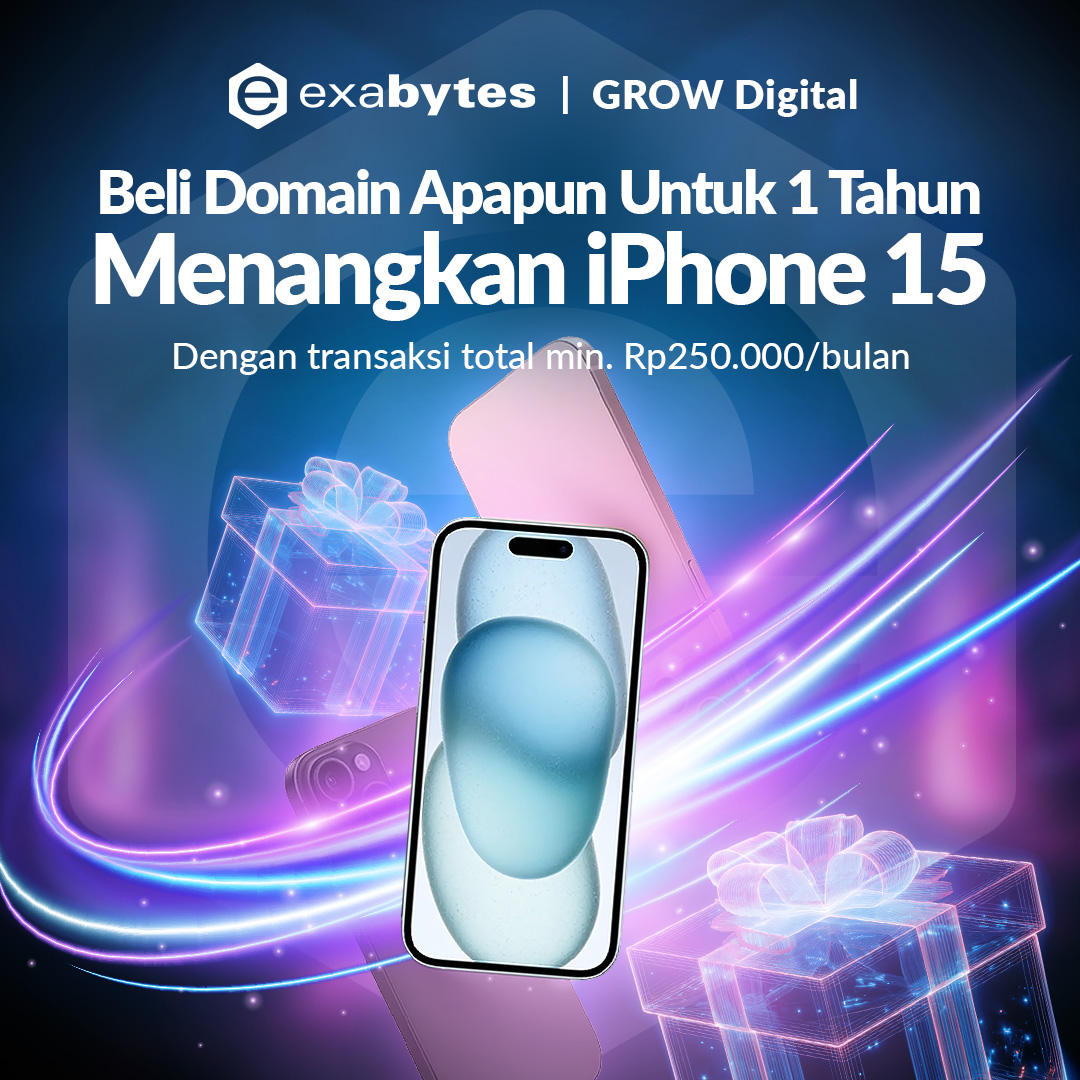 | Bulan Terakhir Giveaway iPhone 15 dari Exabytes! 🚨 | Rahmat Hidayat, kesempatan membawa pulang iPhone 15 gratis dari Exabytes akan segera berakhir. Jangan lewatkan peluang ini! | Cara ikut: 1. Beli domain apa pun untuk 1 tahun dengan total transaksi min. Rp250.000/bulan. 2. Selesaikan pembayaran dan kamu otomatis masuk ke undian Giveaway iPhone 15! | Tahun 2025 akan berakhir dalam hitungan hari. Sambut tahun baru dengan domain profesional, dan, pastinya dengan smartphone baru! 🎁 | Penawaran ini akan berakhir pada 31 Desember 2025. Amankan domain kamu hari ini! | *Syarat dan ketentuan berlaku | | | Privasi Anda penting bagi kami. Harap tinjau Kebijakan Privasi Exabytes dengan mengklik di sini. Untuk informasi mengenai Exabytes, kunjungi exabytes.co.id/hubungi-kami. Hak Cipta © PT Exabytes Network Indonesia. Cyber 2 Tower, Lantai 29, Jalan H.R. Rasuna Said, 12950, Jakarta Selatan, DKI Jakarta, Indonesia. Atur Preferensi | Buka di Browser | | | |