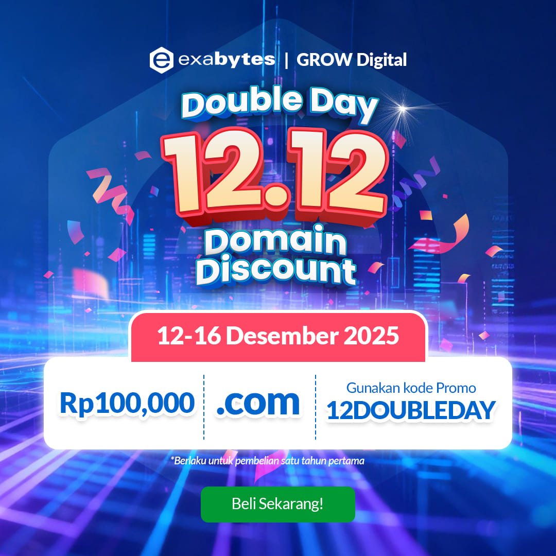 | Domain .COM cuma Rp100.000 spesial Year End Sale! 🎁 | Rahmat Hidayat, manfaatkan momen akhir tahun untuk amankan domain .COM seharga Rp100.000! Gunakan kode: 12DOUBLEDAY | ⏰ Promo ini berlaku dari 12 – 16 Desember 2025. Jangan lewatkan kesempatan ini! | *Syarat dan ketentuan berlaku | | | Privasi Anda penting bagi kami. Harap tinjau Kebijakan Privasi Exabytes dengan mengklik di sini. Untuk informasi mengenai Exabytes, kunjungi exabytes.co.id/hubungi-kami. Hak Cipta © PT Exabytes Network Indonesia. Cyber 2 Tower, Lantai 29, Jalan H.R. Rasuna Said, 12950, Jakarta Selatan, DKI Jakarta, Indonesia. Atur Preferensi | Buka di Browser | | | |
