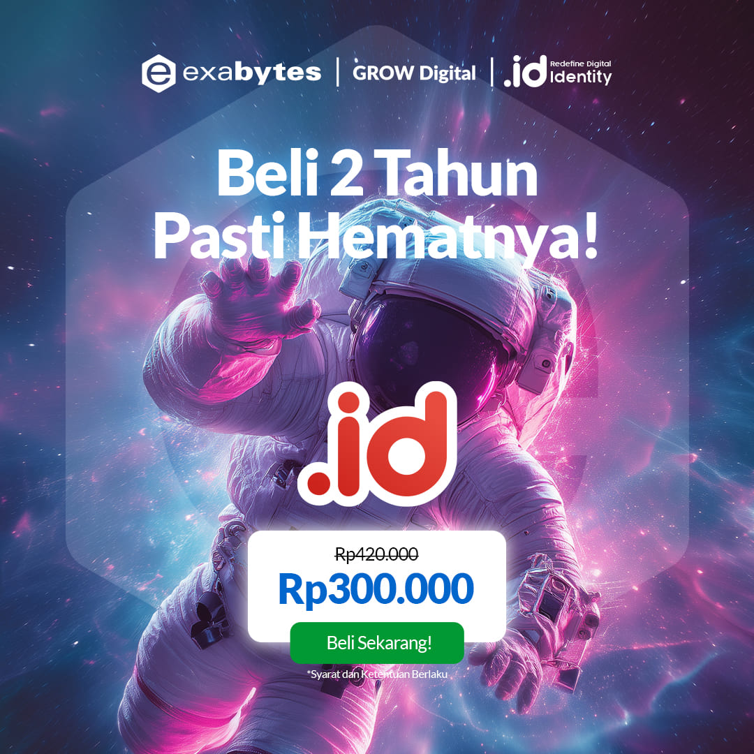 Dapatkan harga spesial untuk pembelian domain .ID 2 tahun hanya Rp300.000 aja! (Sebelumnya Rp420.000)
