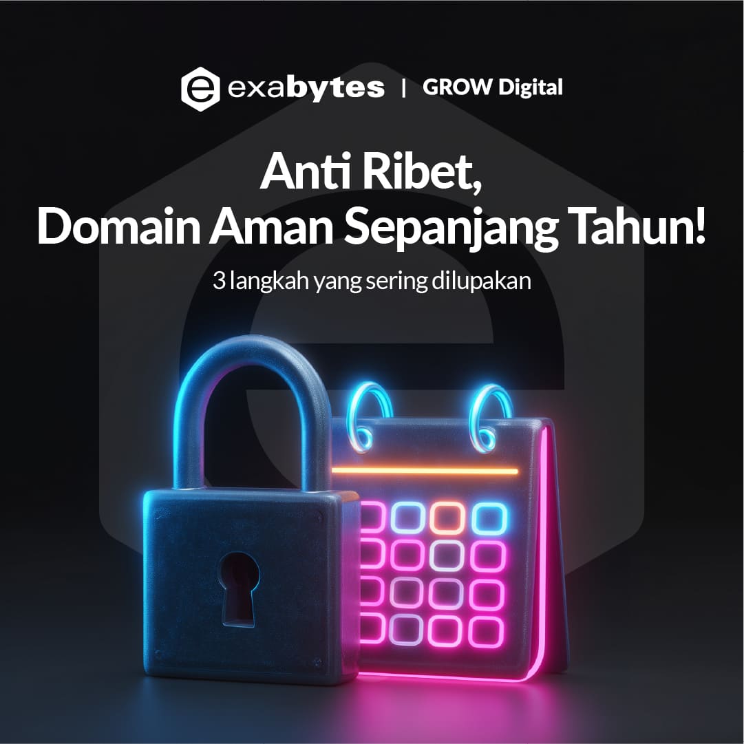 | Rahmat Hidayat, salah satu resolusi 2026 kamu punya website sendiri? | Sebelum beli domain, pastikan layanan yang kamu pilih memberikan 3 perlindungan penting ini sejak hari pertama. | 1. ♾️ Auto-Renewal Domain diperpanjang otomatis setiap tahun. Tidak ada lagi drama lupa bayar, atau risiko kehilangan domain! | 2. 🔐 Domain Lock & Privacy Protection Cegah domain berpindah tangan + lindungi data pribadi kamu dari spam dan pihak tidak bertanggung jawab. | 3. 🛡️ Verifikasi Dua Langkah (2FA) Lapisan keamanan ekstra untuk perlindungan maksimal domain kamu. | Mau yang lebih praktis? Semua fitur ini sudah langsung tersedia saat kamu membeli domain di Exabytes—tanpa setup ribet, tanpa biaya tersembunyi. | | | Privasi Anda penting bagi kami. Harap tinjau Kebijakan Privasi Exabytes dengan mengklik di sini. Untuk informasi mengenai Exabytes, kunjungi exabytes.co.id/hubungi-kami. Hak Cipta © PT Exabytes Network Indonesia. Cyber 2 Tower, Lantai 29, Jalan H.R. Rasuna Said, 12950, Jakarta Selatan, DKI Jakarta, Indonesia. Atur Preferensi | Buka di Browser | | | |