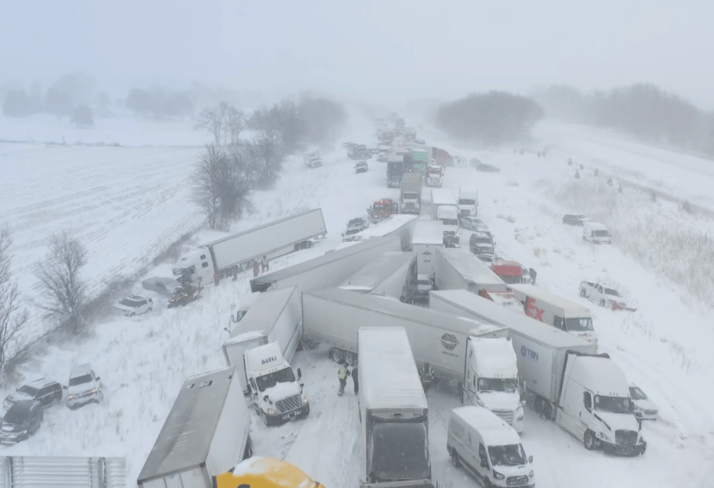 100-Car Pile-Up: This picture is a 100-vehicle pile-up just a couple of miles from our house. Thankfully, we did not need to get out, and enjoyed our snow days from inside our home. Yikes!